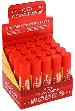 Praktische en betrouwbare lijmstift CONCORDE met een gewicht van 15 g voor dagelijks gebruik op kantoor, op school en thuis. Plakt snel, schoon en zonder uit te drogen materialen zoals papier, karton, stof of foto’s. Is veilig voor kinderen, uitwasbaar en getest met de garantie dat hij tot 5 jaar plakt.