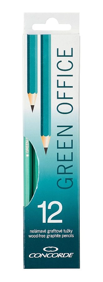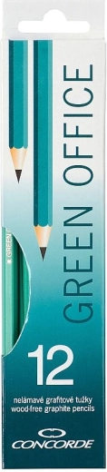 Praktische set van 12 HB grafietpotloden CONCORDE Green Office voor school, kantoor en thuis. De potloden zijn breukvast en flexibel en dankzij de kunststof behuizing bestand tegen dagelijks gebruik. Geleverd in een kartonnen doosje dat milieuvriendelijk is.