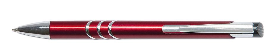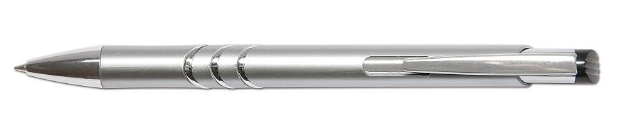 Elegante balpen met een praktisch drukmechanisme, metalen clip en een fijne penpuntbreedte van 0,8 mm. Geleverd in een assorti kleursamenstelling (rood, zwart, zilver) met een kwaliteitsvulling Silver 4441 voor soepel en schoon schrijven.