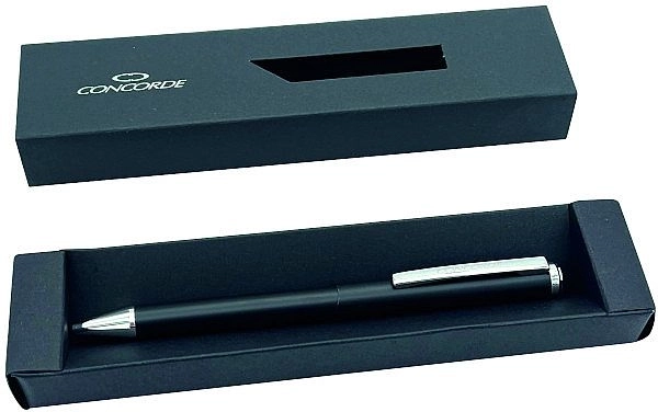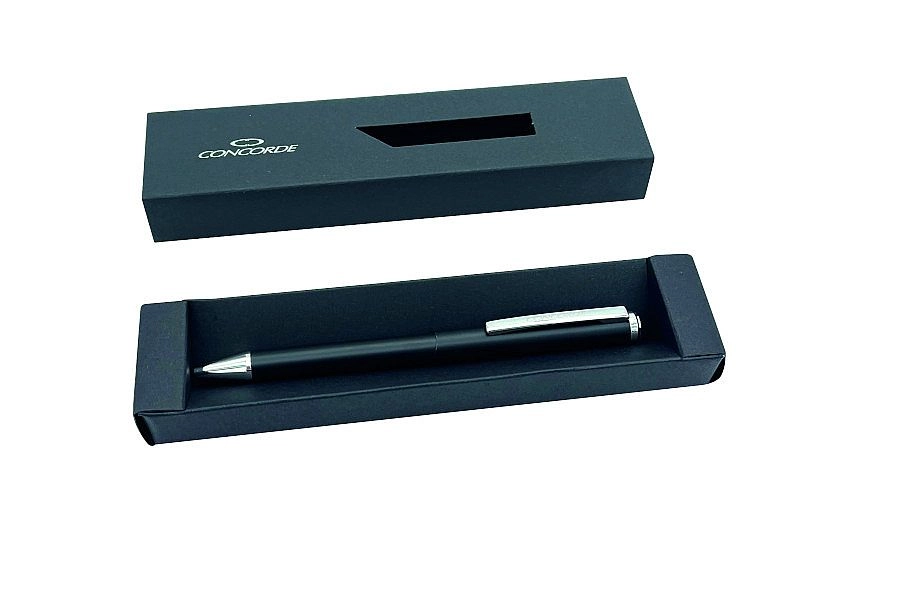 De balpen CONCORDE Zara is een stijlvolle schrijfinstrument voor dagelijks gebruik en representatieve gelegenheden. De matte, zwarte metalen behuizing zorgt voor duurzaamheid en een prettige grip, terwijl de precieze 1,0 mm punt een vloeiende inktstroom zonder onderbrekingen biedt.