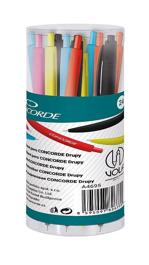 De Concorde Drupy balpen is een ideale keuze voor school, kantoor en thuis. Dankzij de ergonomische rubberen behuizing ligt hij perfect in de hand en biedt hij comfort, ook bij langdurig schrijven. Het drukmechanisme zorgt voor snel inzetten en veilig intrekken van de punt.