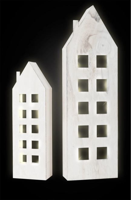 Deze twee decoratieve huisjes onderscheiden zich door hun eenvoudige stijl, die in elk interieur past. Dankzij de LED-verlichting op batterijen worden ze een opvallend element in je decoratie: