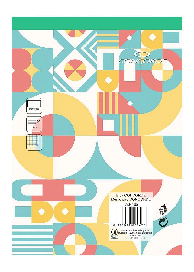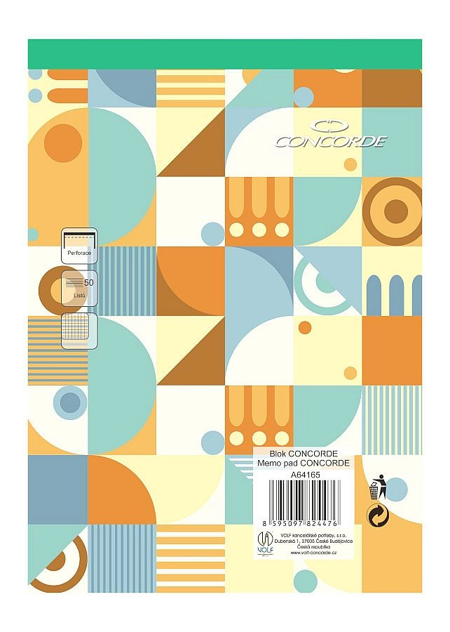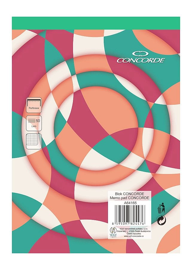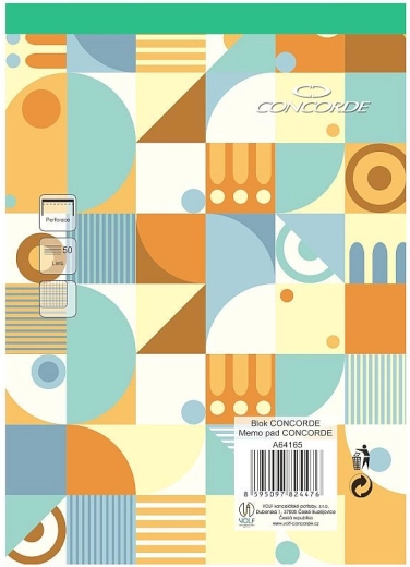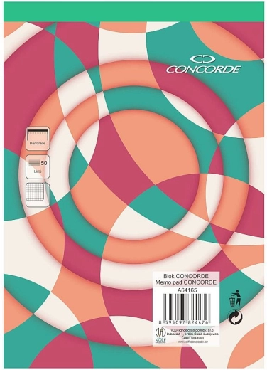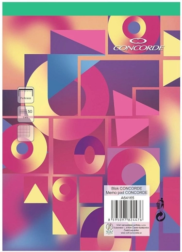 Praktisch gelijmd CONCORDE-blok in A5-formaat met een geruit raster, 50 vellen houtvrij wit papier en perforatie voor eenvoudig afscheuren. Ideaal voor school, kantoor en notities thuis.