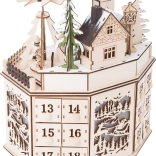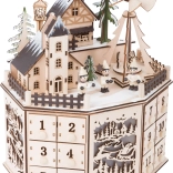Magische adventskalender die kerstsfeer in uw huis brengt. Deze indrukwekkende decoratie valt op door zijn prachtige ontwerp en verlichte historische gebouwen in het kerststadje.