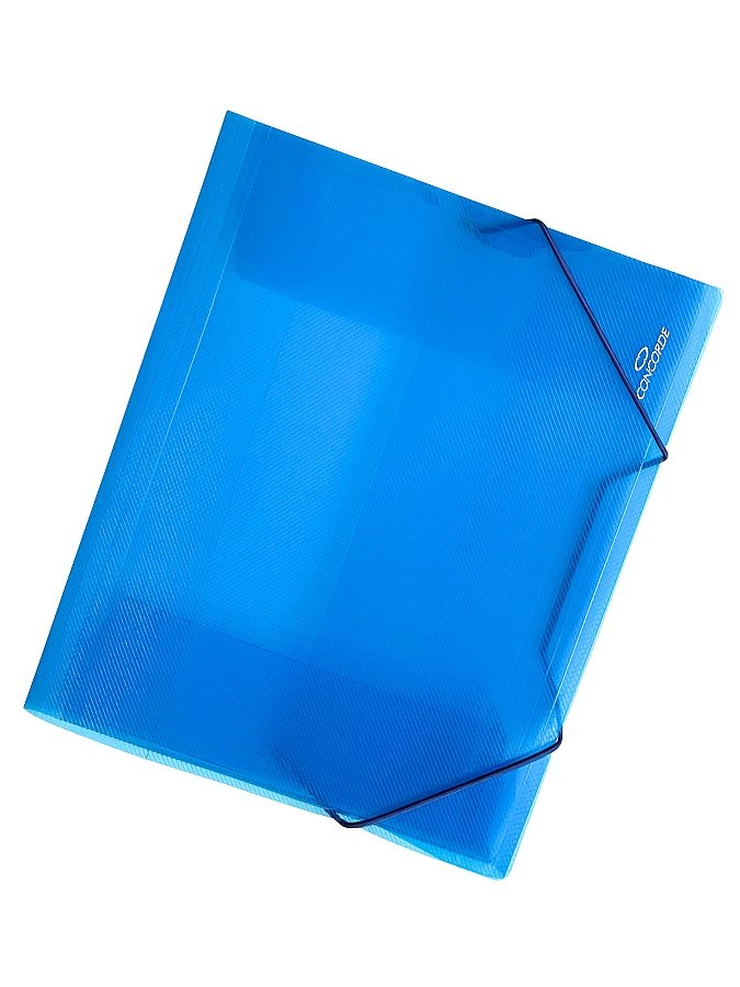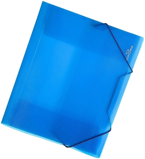 Praktische en duurzame documentenmappen met elastiek A4 in transparant blauw voor het veilig opbergen van documenten. 3 kleppen voorkomen dat de inhoud eruit valt, het verstevigde geruit materiaal van 450 micron garandeert een lange levensduur en na het vouwen van de kleppen kun je de map omzetten in een documentenbox tot een hoogte van 3,5 cm.