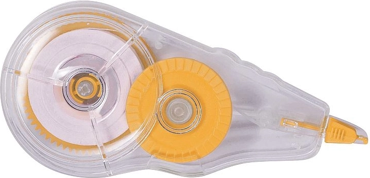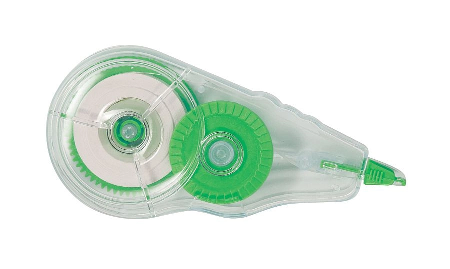 De transparante behuizing zorgt voor optische controle van de resterende tape, terwijl het doordachte mechanisme met extra wieltje je in staat stelt snel de rol na te spannen en loslopen te voorkomen. Je zult het soepele afrollen zonder scheuren waarderen bij snel werken, en de correctie blijft onzichtbaar op fotokopieën.