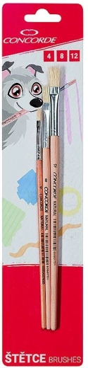 Universele set van drie platte kwasten CONCORDE Natural in de maten 4, 8 en 12, ideaal voor hobby- en vakwerk. Biedt nauwkeurige applicatie, natuurlijke varkensharen voor goede opname en een duurzaam houten handvat voor een comfortabele grip. Geleverd op een praktische blister.