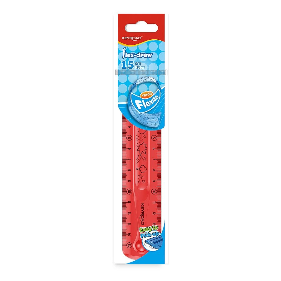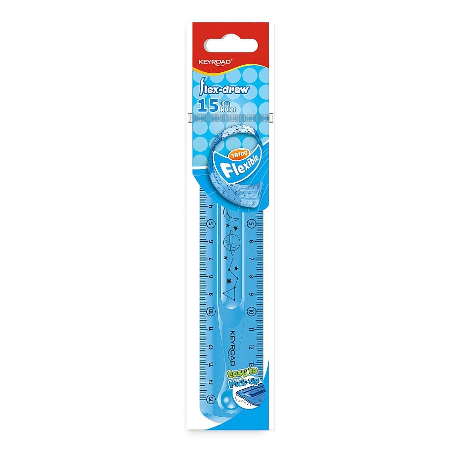 De flexibele liniaal KEYROAD Flexi van 15 cm is een ideale hulp voor scholieren, studenten en creatief werk. De duurzame, veerkrachtige kunststof maakt buigen mogelijk zonder te barsten en de transparante uitvoering vergemakkelijkt nauwkeurig uitlijnen bij het tekenen van rechte lijnen en meten in millimeters.