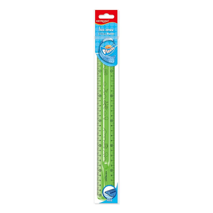 U zult ook de veilige samenstelling zonder ftalaten en de praktische lengte van 30 cm waarderen, geschikt voor schoolschriften, tekeningen en kantoordocumenten. Geleverd in groene kleur in hangverpakking.