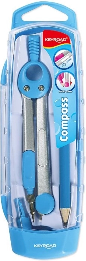 Universele passer KEYROAD Jelly Bean in een praktisch etui biedt nauwkeurig tekenen van cirkels en bogen voor school en kantoor. Hij heeft een metalen uitvoering voor stabiliteit, een houder voor stift en potlood, een beschermkap voor de scherpe punt voor veilige opslag en een labelvlak op de arm. De set bevat een kort grafietpotlood, een doosje met 2 reservevullingen en een universele houder – alles in het blauw.