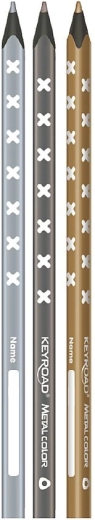 De metallic kleurpotloden van Keyroad zijn een plezier voor zowel kinderen als volwassenen die hun tekeningen en opschriften een glanzend effect willen geven. Het driekantige lichaam van hoogwaardig zwart hout ondersteunt een correcte greep en comfort, ook bij langer tekenen. De zachte, gepigmenteerde kern met een diameter van 3 mm zorgt voor volle, vloeiende streken zonder onnodige druk.