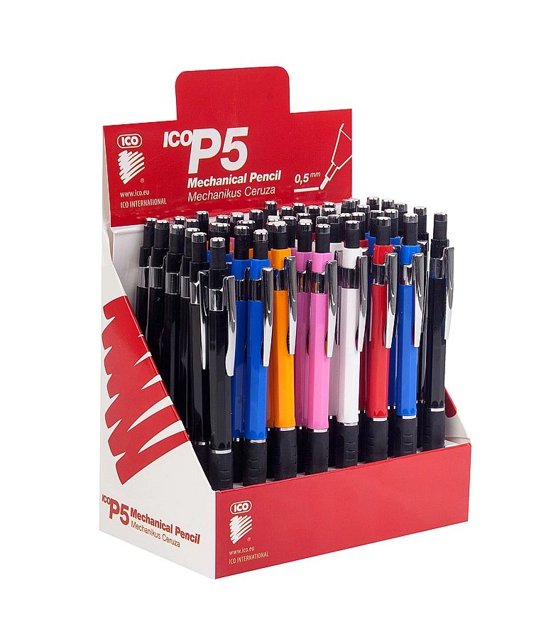 Het mechanische potlood ICO P5 0,5 mm is een ideale keuze voor dagelijks schrijven, aantekeningen en nauwkeurig tekenen. Dankzij de fijne microvulling geeft het een strakke lijn zonder vegen en de rubberen grip biedt comfort, ook bij langer gebruik.