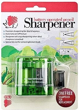 Compacte en betrouwbare elektrische ICO Mini puntenslijper op batterijen voor standaard potloden en kleurpotloden met een diameter van 8 mm. Biedt snel en schoon slijpen zonder moeite, ideaal voor school, kantoor en thuis. In de verpakking zit een reservemesje voor een langere levensduur. Het apparaat kan niet met een adapter worden gevoed.