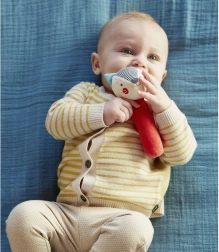 Schattige piepende rammelaar in de vorm van een vosje van Petit Collage, ideaal voor de allerkleinsten en ter ondersteuning van hun ontwikkeling. Het is zacht, gemakkelijk vast te houden en gemaakt van organisch GOTS-gecertificeerd katoen. Stimuleert de fijne motoriek, vermaakt thuis en onderweg en is veilig dankzij plantaardige kleurstoffen.