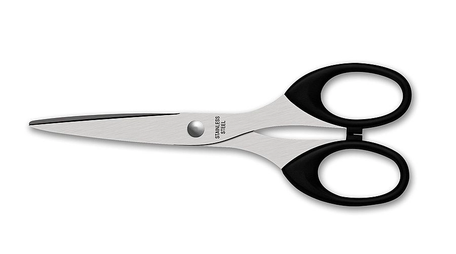 Universele kantoorschaar van 16,5 cm in een elegant zwarte uitvoering voor dagelijks knippen van papier en andere materialen. Voorzien van stalen bladen voor een zuivere snede, een comfortabel ergonomisch handvat en blisterverpakking voor praktische presentatie.