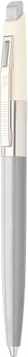 Elegante balpen in pastelgrijs met metalen clip en een betrouwbare klikmechaniek. Biedt comfortabel schrijven, een stevige 0,8 mm punt voor een vloeiende lijn en een stijlvolle retrolook. Ideaal voor kantoor en school.