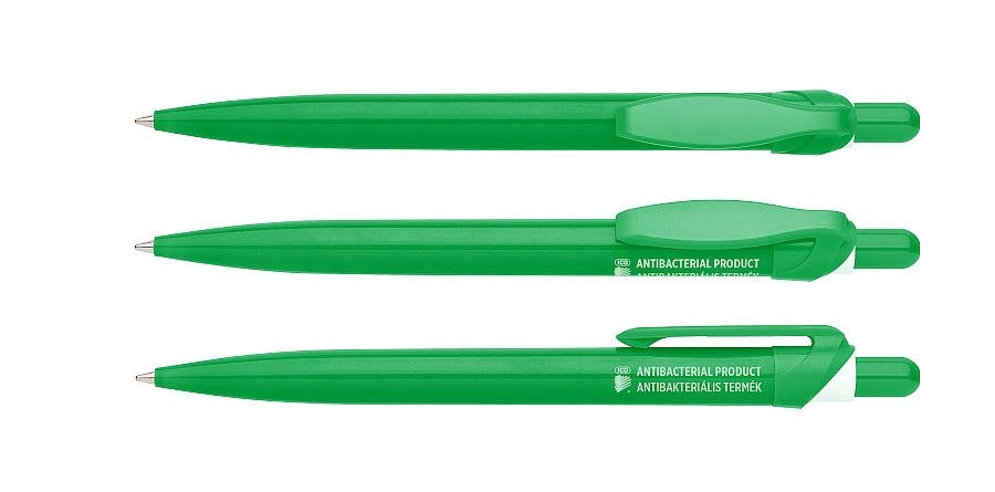 De antibacteriële balpen van ICO is ontworpen voor maximale hygiëne in omgevingen waar de pen door veel gebruikers wordt gedeeld. Een speciale mix met zilver-nanodeeltjes is direct in het kunststof verwerkt, waardoor langdurig het aantal bacteriën wordt verminderd op het oppervlak van de pen en hun verspreiding wordt tegengegaan.