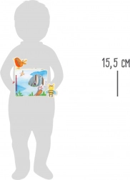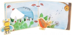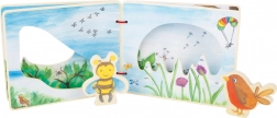 Ontdek de natuur met dit houten prentenboek voor de allerkleinsten. Een vrolijk bijtje en vogeltje begeleiden kinderen op elke pagina en stimuleren fantasie, fijne motoriek en de eerste kennismaking met flora en fauna. De figuurtjes kunnen voor veilig opbergen met klittenband aan de achterkant van het boek worden vastgemaakt. Gemaakt van 100% FSC-gecertificeerd hout.