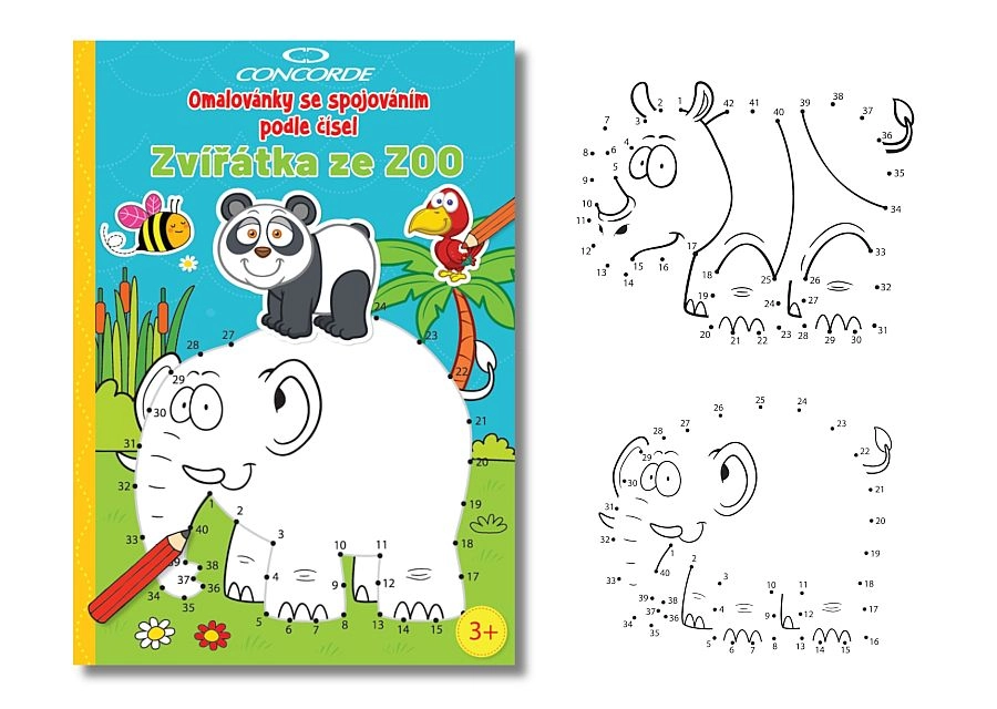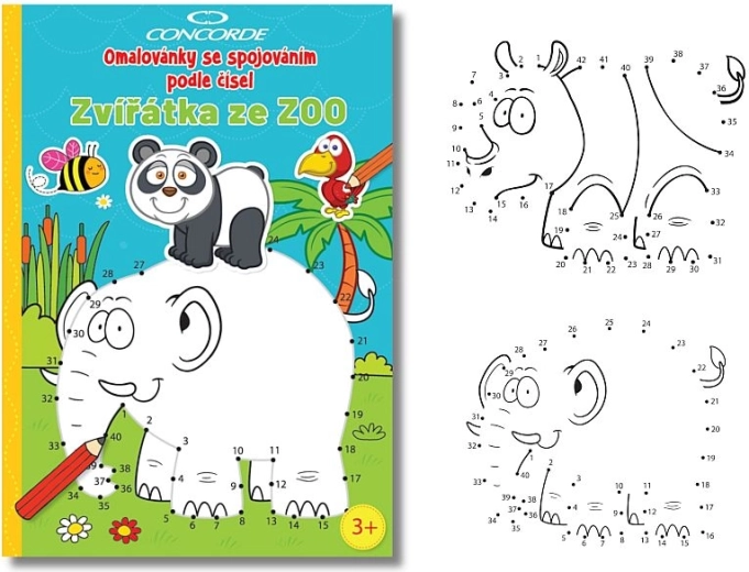 Deze creatieve CONCORDE-kleurplaten bieden 20 afbeeldingen uit de wereld van de dierentuin. Kinderen verbinden eerst de afzonderlijke punten in numerieke volgorde en onthullen zo het verborgen motief, dat ze daarna naar eigen fantasie kunnen inkleuren.