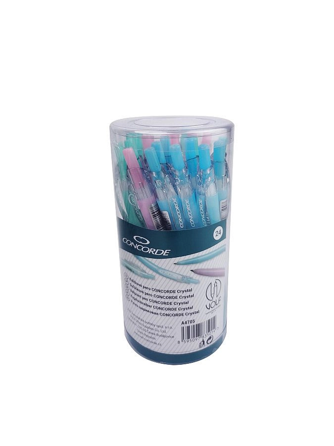 De Concorde Crystal balpen is een ideale keuze voor dagelijks schrijven op kantoor, op school en thuis. De semi-transparante kunststof behuizing maakt het eenvoudig om het inktniveau te volgen en de pasteltinten geven je schrijfwerk een frisse stijl. Dankzij het klikmechanisme is de pen altijd klaar voor gebruik zonder gedoe met dopjes.