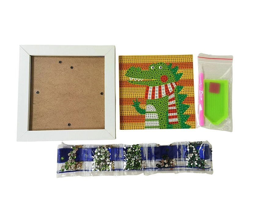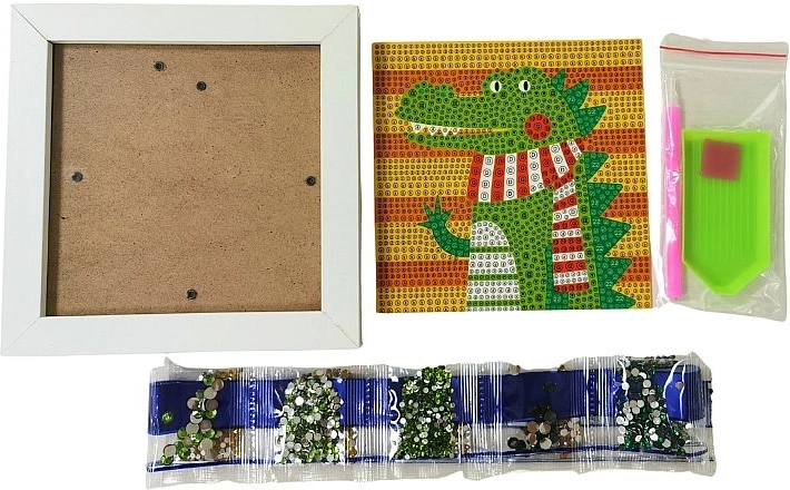 Deze creatieve diamantcreatieset met krokodillenmotief zal zowel kinderen als volwassenen bekoren. Dankzij de kleurrijke voorbeeldkaart en de eenvoudige applicatie van de diamantjes met pen en siliconengel kan echt iedereen een prachtig sprankelend plaatje maken. Het voltooide werk kun je met trots tentoonstellen in de meegeleverde witte fotolijst.