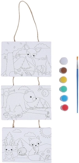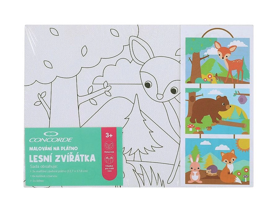 Ontdek creatieve pret met de schilderset CONCORDE met motieven van bosdieren. De set bevat 3 hangdoeken 12,7 × 17,8 cm, 6 potjes verf en een penseel – ideaal voor kinderen en beginnende schilders. Schilder aan de hand van een voorbeeld of gebruik je fantasie en maak originele afbeeldingen vol kleur. Creatief bezig zijn brengt plezier, ontspanning en ontwikkelt creatieve vaardigheden.