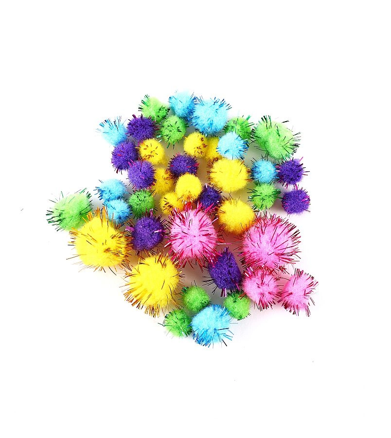 Voeg volume, structuur en expressie toe. Pompons in verschillende maten en zelfklevende wiebeloogjes veranderen elk werkje in een uniek figuurtje.