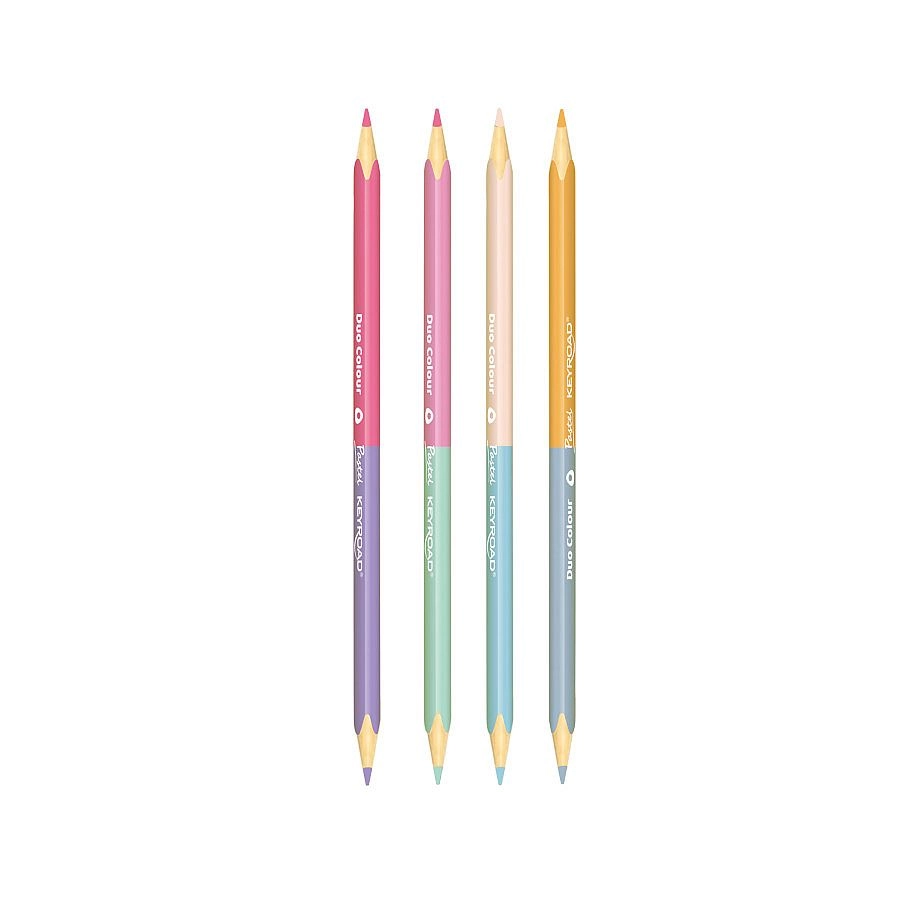 De Keyroad Duo Pastel kleurpotloden zijn een uitstekende keuze voor kinderen, studenten en creatieve volwassenen. Elk potlood combineert twee bijpassende kleuren in één body, waardoor je ruimte in je etui bespaart en je palet uitbreidt tot indrukwekkende 24 tinten. De zachte pasteltinten zorgen voor een elegante uitstraling van je tekeningen en komen extra mooi uit op donker papier.