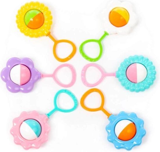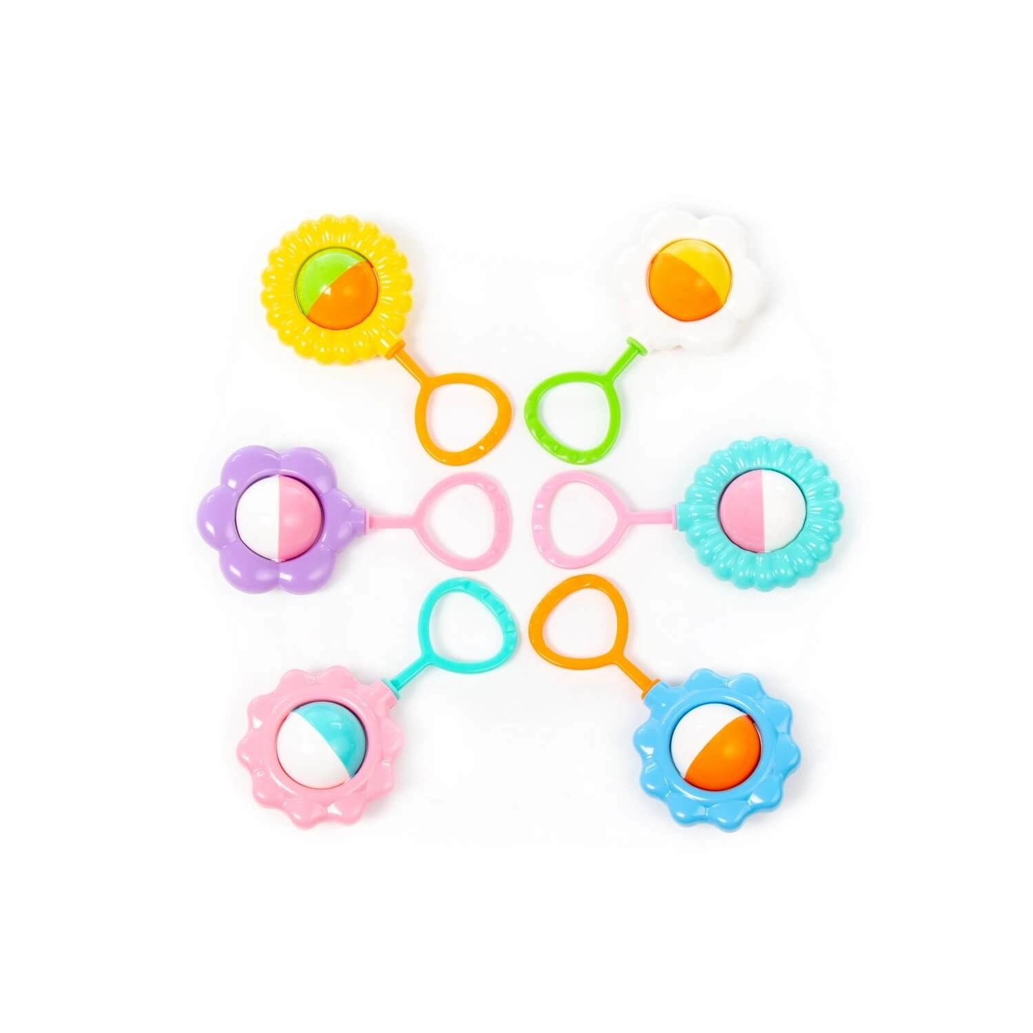 Vrolijke babyrammelaars in de vorm van bloemen stimuleren zicht, gehoor en fijne motoriek. Dankzij het lichte en veilige ontwerp met een ergonomische grieplus blijven ze makkelijk vast in zelfs de allerkleinste handjes. Verschillende vormen en kleuren nodigen uit tot ontdekken en zijn ideaal voor dagelijks spelen thuis en onderweg. Verkrijgbaar in 6 verschillende soorten. Prijs is per stuk.
