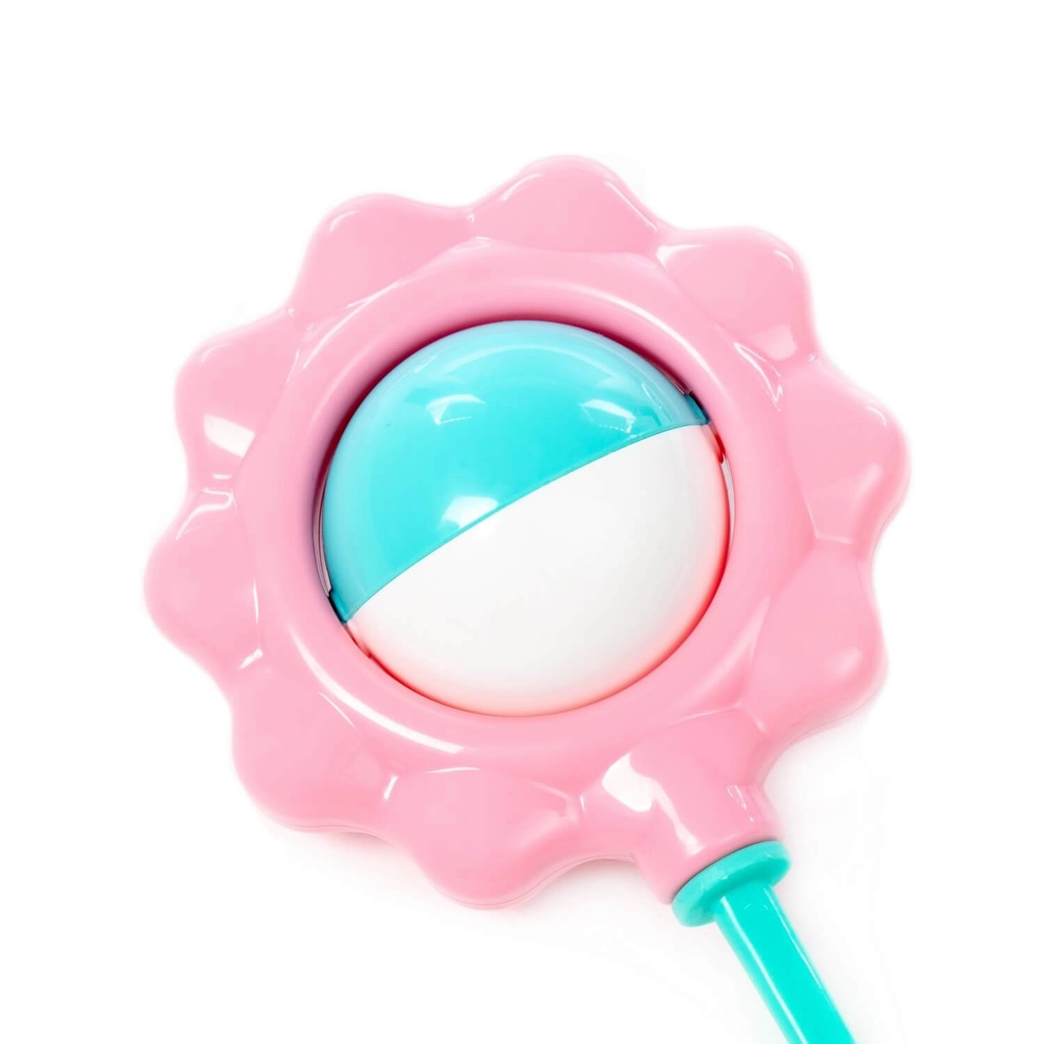 Het centrale balletje draait mee bij beweging en rammelt zacht, waardoor het gehoor wordt gestimuleerd en het kind wordt aangemoedigd om te spelen.
