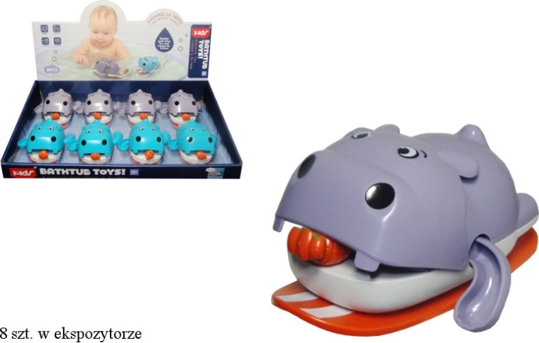 Het schattige, zwevende nijlpaardje op een plankje maakt van elk badmoment een feestje. Trek aan de wortel in het bekje en het nijlpaardje begint met zijn pootjes te peddelen en over het water te bewegen. Het speeltje is verkrijgbaar in verschillende kleuropties en is ideaal voor kinderen vanaf 3 jaar.