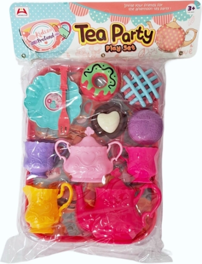 De set bevat een theeservies met accessoires en kleine “etenswaren”, waardoor het spel nog realistischer wordt. De set is verpakt in een transparant zakje, zodat je hem gemakkelijk kunt opbergen en meenemen. De vermelde afmetingen hebben betrekking op de verpakking.