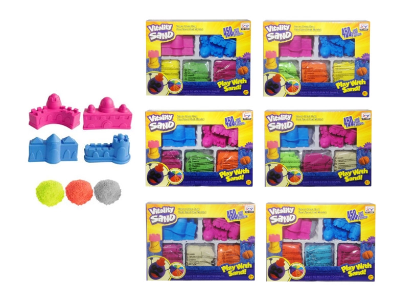 De set bevat drie levendige zandkleuren en praktische vormpjes waarmee kinderen hun eigen kasteel en andere originele bouwwerken kunnen maken. Spelen met zand bevordert concentratie, creativiteit en de ontwikkeling van de fijne motoriek – allemaal op een speelse manier, thuis of in de kinderopvang.