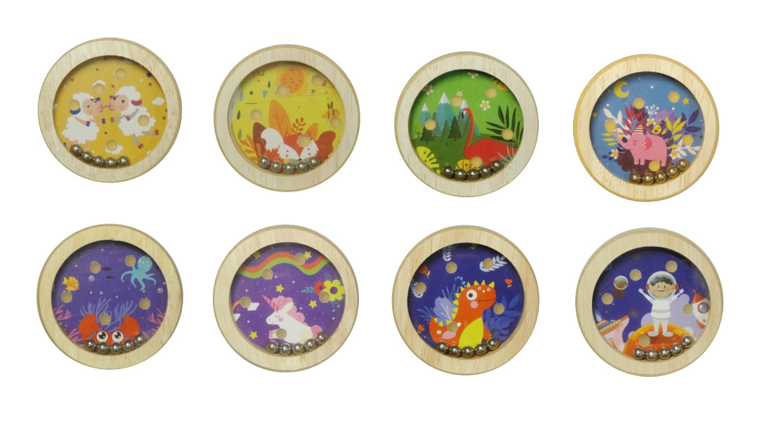 Ontdek een eenvoudig en verslavend houten knikkerbalspel dat geduld, oog-handcoördinatie en fijne motoriek ontwikkelt. Jouw taak is om vijf metalen knikkertjes in de voorbereidende kuiltjes te krijgen – een ideale uitdaging voor kinderen en volwassenen.