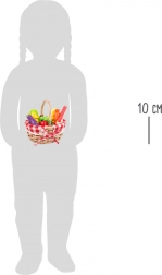 Deze hoogwaardige set bevat een rieten mand met geruite stof en houten stukken fruit en groenten (aardbeien, wortel, aubergine, maïskolf, appel, banaan enz.). De delen zijn met klittenband verbonden, zodat kinderen ze veilig kunnen “snijden” met het houten mes en weer samenvoegen. Perfecte aanvulling voor de kinderkeuken en het marktkraampje.
