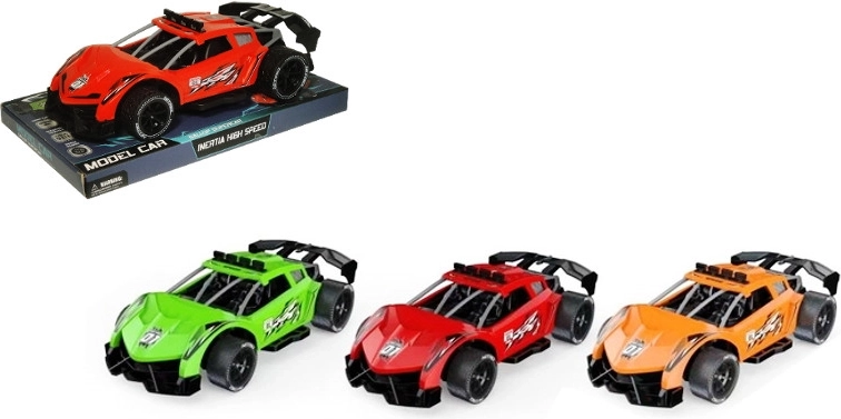Leuke sportauto met vliegwiel voor kleine racers. Gewoon achteruit trekken, loslaten en de auto schiet vooruit. Ideaal voor race spelletjes, verkrijgbaar in verschillende kleuren die willekeurig worden gekozen. Prijs is per stuk. Geleverd op een kartonnen voet met een transparante kap.