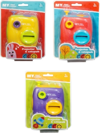 Een leuke kinderprojector in de vorm van een camera combineert 2 functies in 1 speelgoed – het projecteren van afbeeldingen en het afschieten van schijven. Inclusief 2 schijven met grappige plaatjes om op de muur te projecteren en 6 gekleurde ronde schijven die je met een afvuurknop kunt lanceren. Het speelgoed werkt op AG13-batterijen, die zijn inbegrepen. Verkrijgbaar in meerdere kleuren, de keuze is willekeurig. Prijs geldt voor 1 stuk.