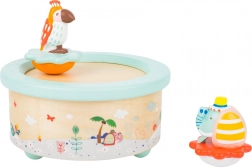 Het muziekdoosje met olifant en papegaai is een betoverende aanvulling voor elke kinderkamer. De houten en kunststof figuurtjes blijven dankzij magneten veilig op de bovenkant van het doosje zitten, zodat je ze gemakkelijk kunt loshalen en als losse speeltjes kunt gebruiken. Dit doosje: