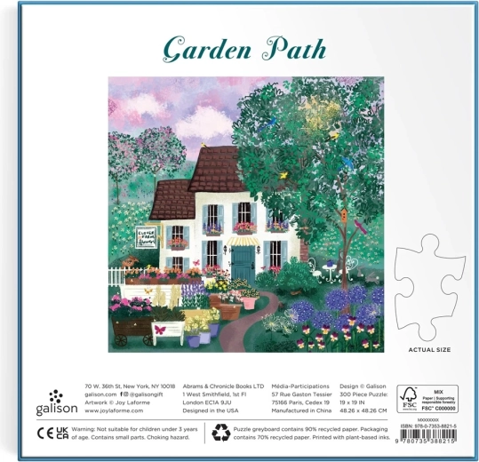 Dompel je onder in de rustgevende sfeer van een tuinpad, sfeervol vastgelegd door kunstenares Joy Laforme. Dankzij de gedetailleerde illustratie en verzadigde kleuren ontstaat een beeld dat liefhebbers van kunst, natuur en interieurdesign zal bekoren. De middelmatige moeilijkheidsgraad met extra grote stukjes garandeert een vlotte legervaring zonder onnodige frustratie.
