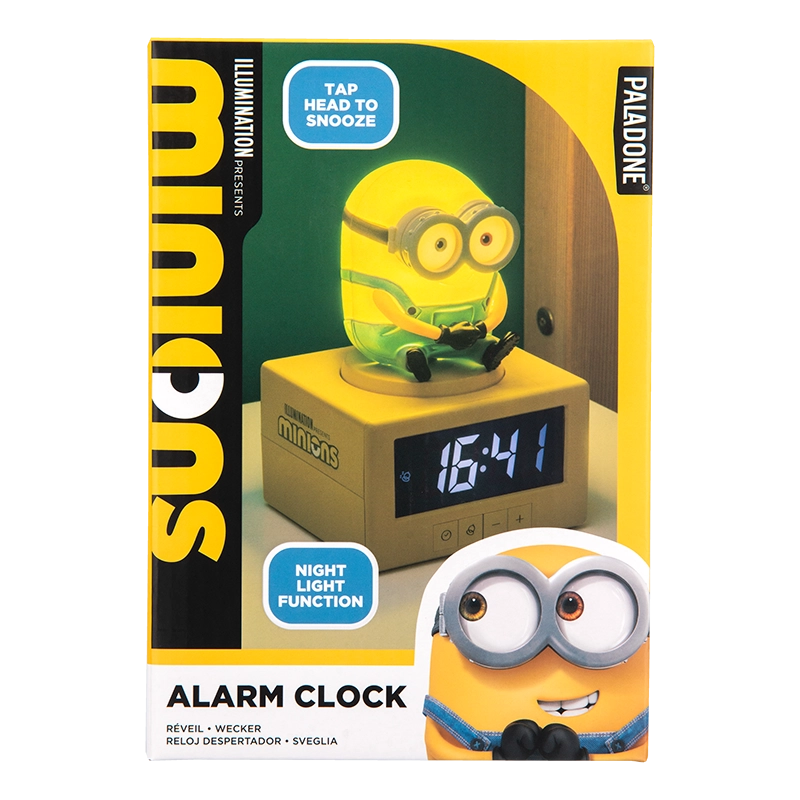 Word wakker met een glimlach dankzij de gelicentieerde MINIONS-wekker, die een speelse look combineert met praktische functionaliteit. De ronde vorm, de opvallende gele kleuren en de iconische bril maken het een vriendelijk accessoire voor de kinderkamer of op het bureau. De grote witte wijzerplaat met zwarte cijfers en contrasterende wijzers (rode secondewijzer) zorgt voor snelle en overzichtelijke tijdsoriëntatie.