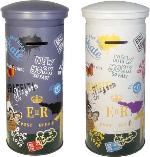 Stijlvolle spaarpot in de vorm van een hoge brievenbus met kleurrijke prints, leuk voor zowel kleine als grote spaarders. Biedt een aantrekkelijk design, gemakkelijk inworp van munten en is ideaal voor kinderen vanaf 3 jaar. Wordt geleverd in twee kleuropties – donker en licht, de keuze is willekeurig.