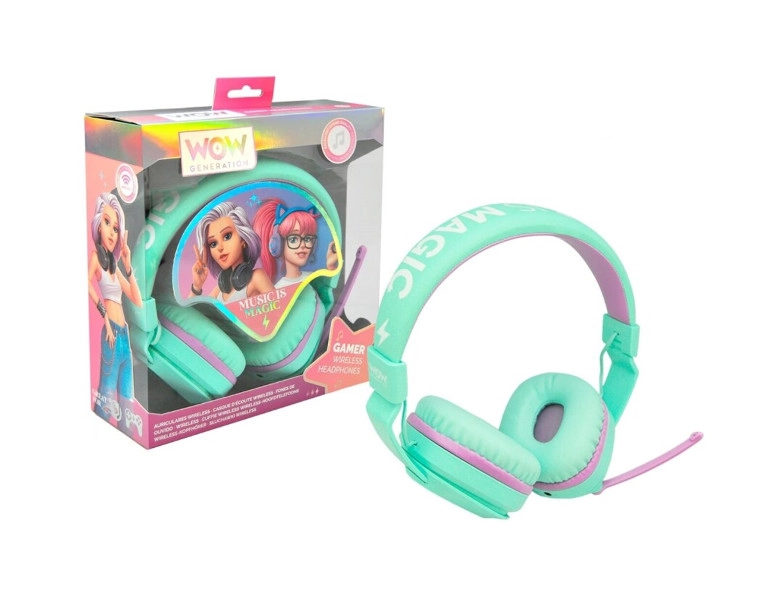 Schattige en comfortabele WOW kinderhoofdtelefoon met draadloze Bluetooth-verbinding, lichtgewicht ontwerp en ideaal formaat voor kleine dames. Een geweldige keuze voor het luisteren naar muziek, verhaaltjes en lessen, thuis en onderweg.