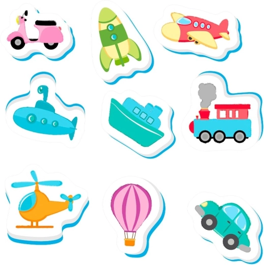 - 9 kleurrijke stukjes met vervoersthema voor creatief spel