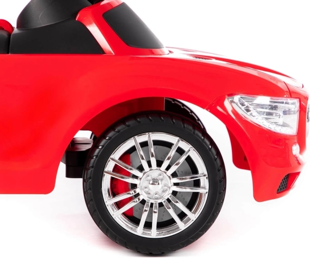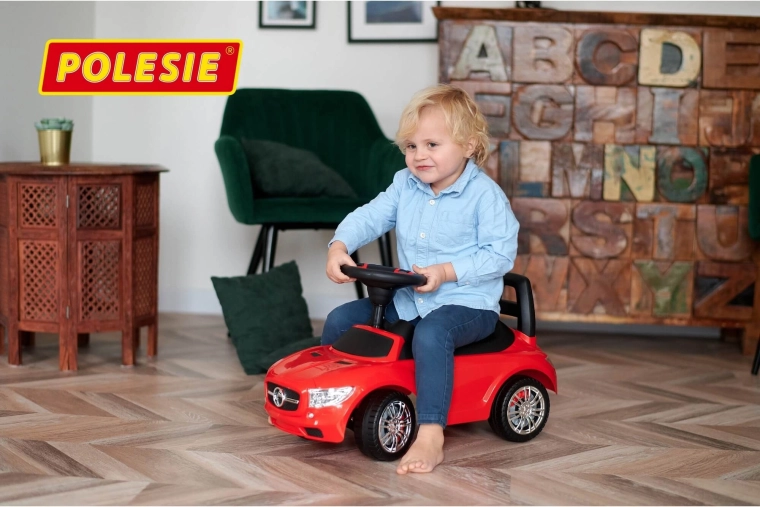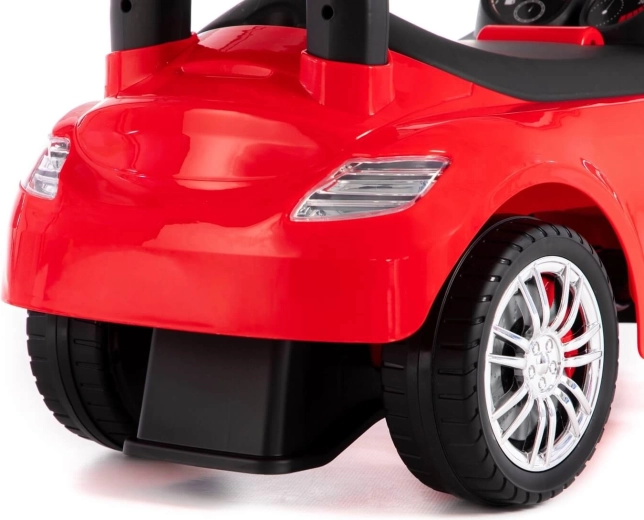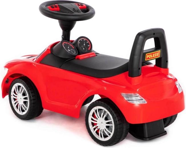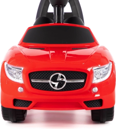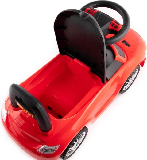Stijlvolle kinderloopauto SuperCar in het rood met een stabiele constructie, comfortabele zitting met rugleuning en een stuur met geluideffecten (claxon, motorgeronk, melodieën). Onder de zitting bevindt zich een praktische opbergruimte voor kleine spulletjes. Steppen met de loopauto stimuleert de ontwikkeling van balans, coördinatie en motoriek. Maximale belasting is 50 kg, voeding voor geluiden: 2× AA (alkaline aanbevolen).