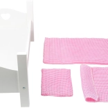 Het bedje wordt geleverd met een zacht kussen, deken en hoeslaken met een roze patroon voor maximaal comfort voor poppen.
