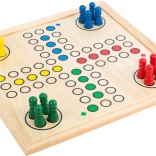 De houten box met verdeelde vakken en een viltbodem zorgt voor eenvoudig opbergen en organiseren van de spelonderdelen.