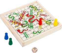 Het bordspel 'Slangen en Ladders' biedt plezier voor de hele familie. Het doel van het spel is om van 1 naar 100 te geraken en je tegenstanders te verrassen. Als je op een slang belandt, wordt de weg langer, terwijl een ladder je dichter bij de finish brengt. Het spel is compact en alle stukken zijn veilig opgeborgen in hun eigen doos, die tevens als speelbord dient.