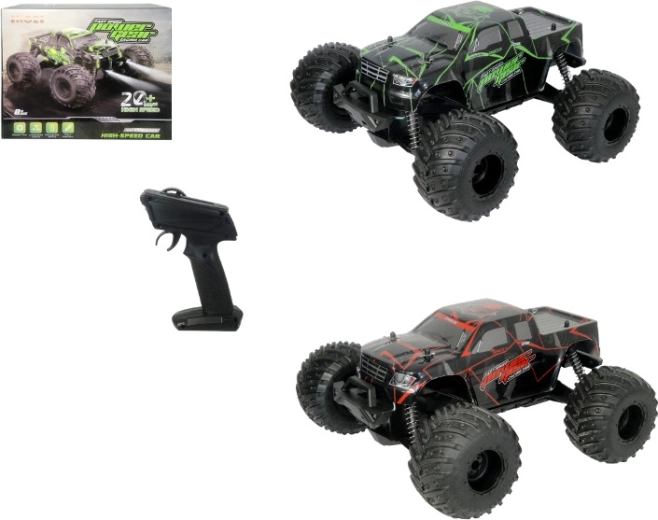 Beleef een adrenalinerit met deze terrein RC-auto die snelheden tot 20 km/u haalt en wordt bestuurd met een afstandsbediening. De auto beweegt in alle richtingen (vooruit/achteruit, rechts/links), trotseert oneffenheden en is dankzij de ingebouwde Li-ion-accu direct klaar voor gebruik. De afstandsbediening werkt op standaard AA-batterijen (niet inbegrepen). Verschillende kleurvarianten, verpakt in een doos.