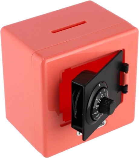 Het deurtje aan de voorkant met draaicijferknop maakt sparen leuk en geeft een veilig gevoel. Kinderen beleven plezier aan het openen van de “kluis” en leren zo de waarde van geld.