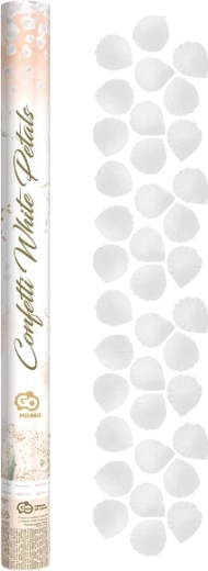 Creëer een perfect feestelijk moment met pneumatische confetti in de vorm van zachte witte rozenblaadjes. Het hoogwaardige textielmateriaal oogt realistisch, dwarrelt prachtig neer en zorgt bij het afvuren uit de buis voor een indrukwekkend visueel effect voor foto en video.